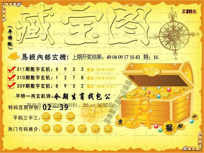 310期平特藏宝玄机:【今期生肖在北边】 |